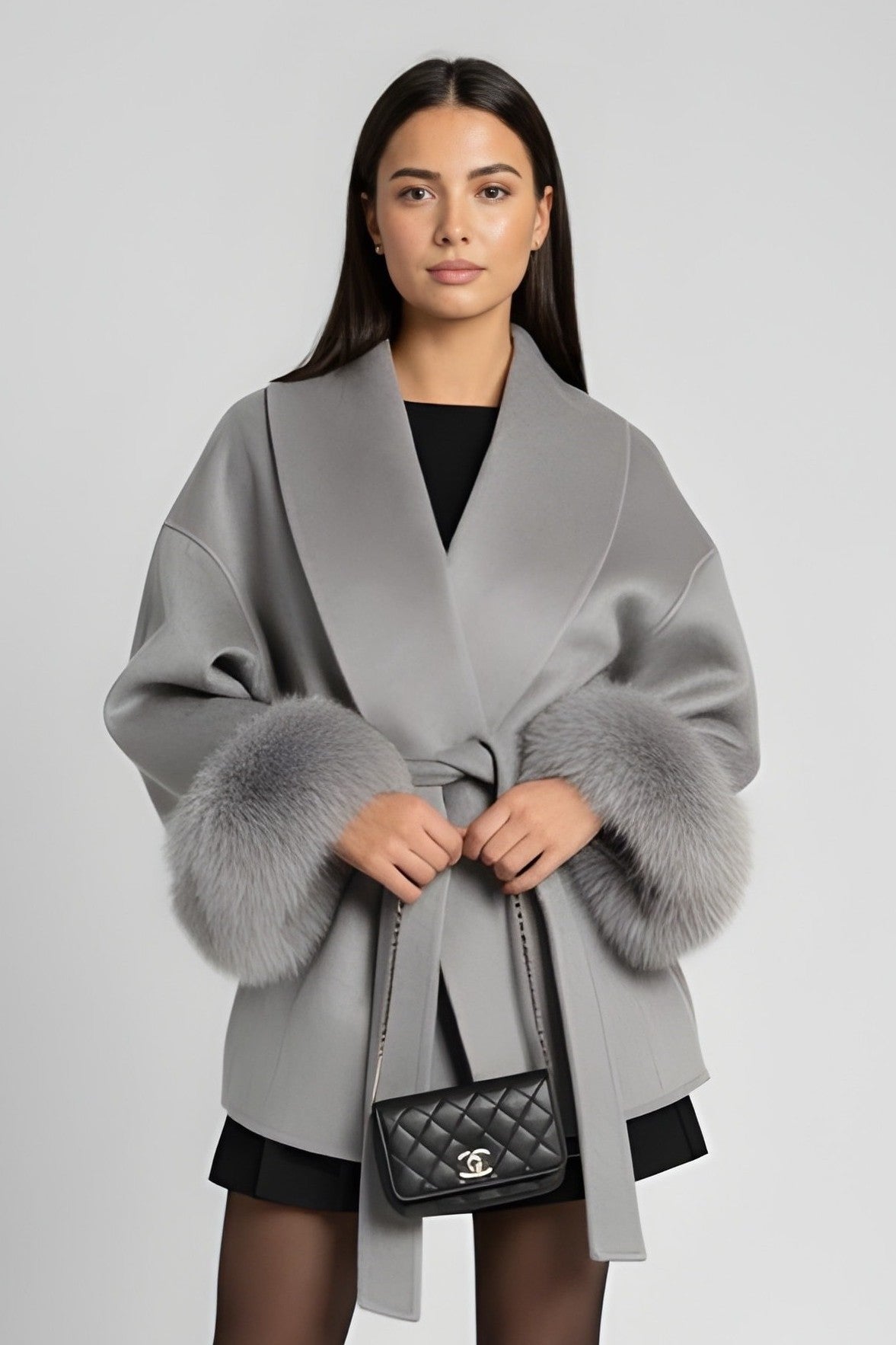 FLORENCE | Belted Fur Wool Coat