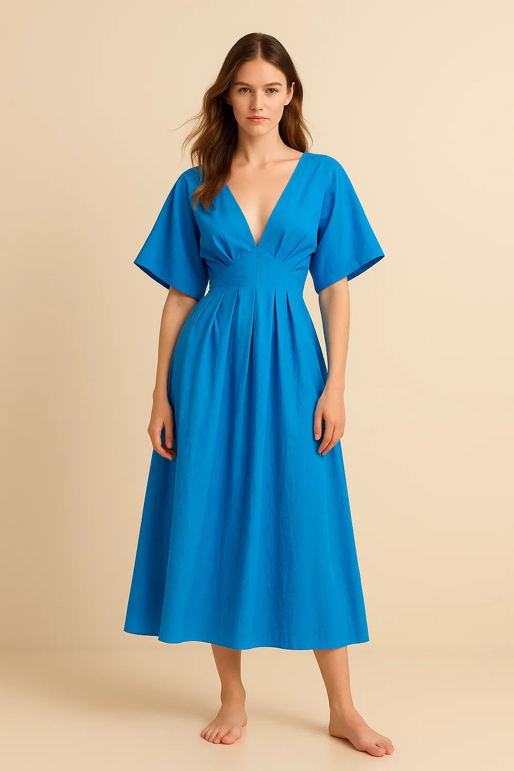 CASSIA | Draped Waist Satin-Panel Maxi Dress